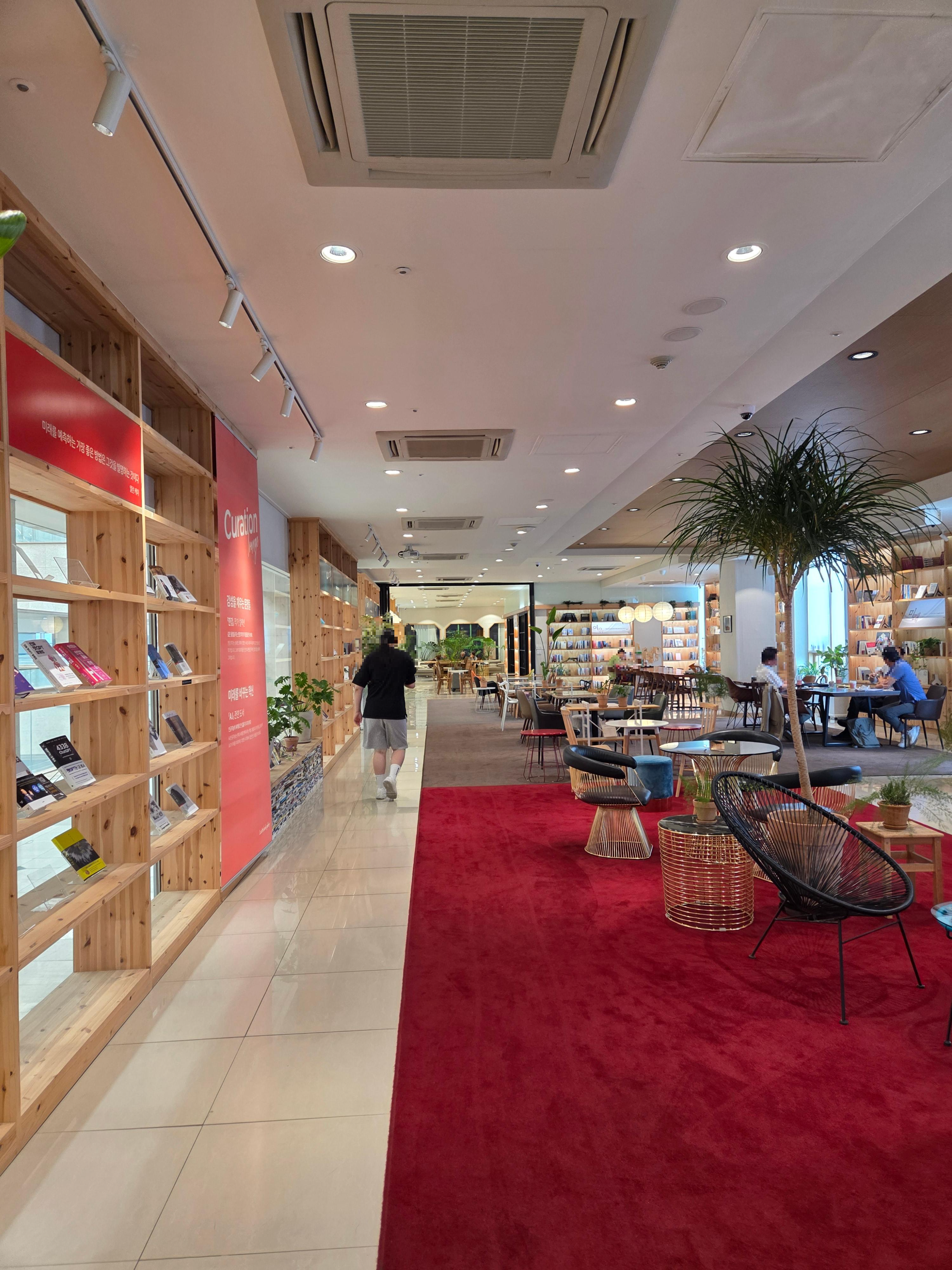 서가에는 다양한 분야의 책이 잘 정리되어 있습니다. 유명한 책은 물론이고, AI나 트렌드 관련 주제, 한강 작가님의 작품 등 관심 가는 분야로 큐레이션된 책장도 따로 마련되어 있어요.